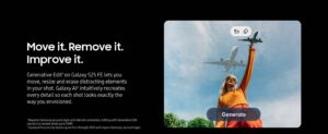 - MOVE IT. REMOVE IT. IMPROVE IT: Generative Edit² on Galaxy S25 FE lets you move, resize and erase distracting elements in your shot. Galaxy AI intuitively recreates every detail so each shot looks exactly the way you envisioned.³